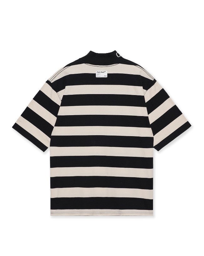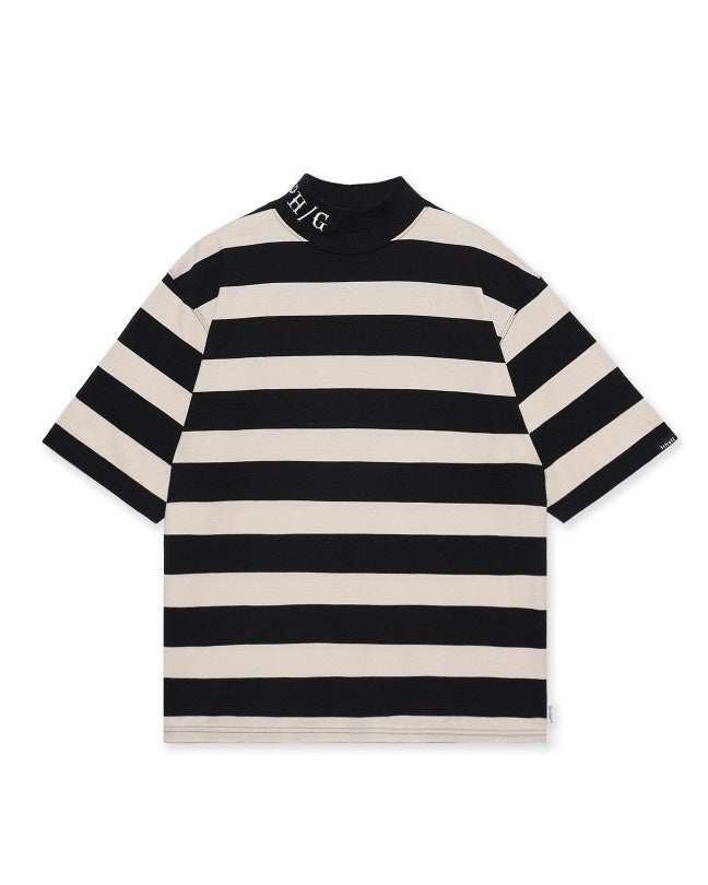 「CAPTAINS HELM GOLF」のサマーシーズンを代表するアイテムでもある度の詰まった天竺素材のモックネックTシャツを、Schottの代表的な太ピッチボーダーに変更したことで無骨な仕上がりとなっている。衿部分には「CAPTAINS HELM GOLF」の刺繍入り。