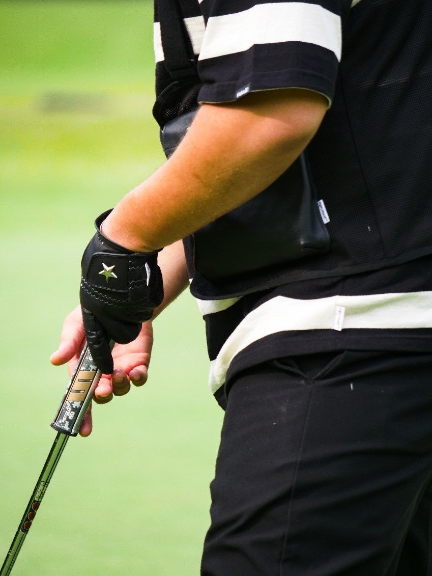 ゴム部分にあしらったホワイトラインをアクセントにした、手元までブランドらしさを感じられるディテール。きめ細かくしなやかなシープレザー(羊革)を使用し、柔軟性やフィット感、グリップ力に優れた仕上がり。手首の動きに配慮したパターンなのでで、スイングの邪魔にならない。今回のカプセルコレクションにマッチするデザインと本革ならではの使い込むことで得られる装着感は人工皮革にはないクオリティ。
