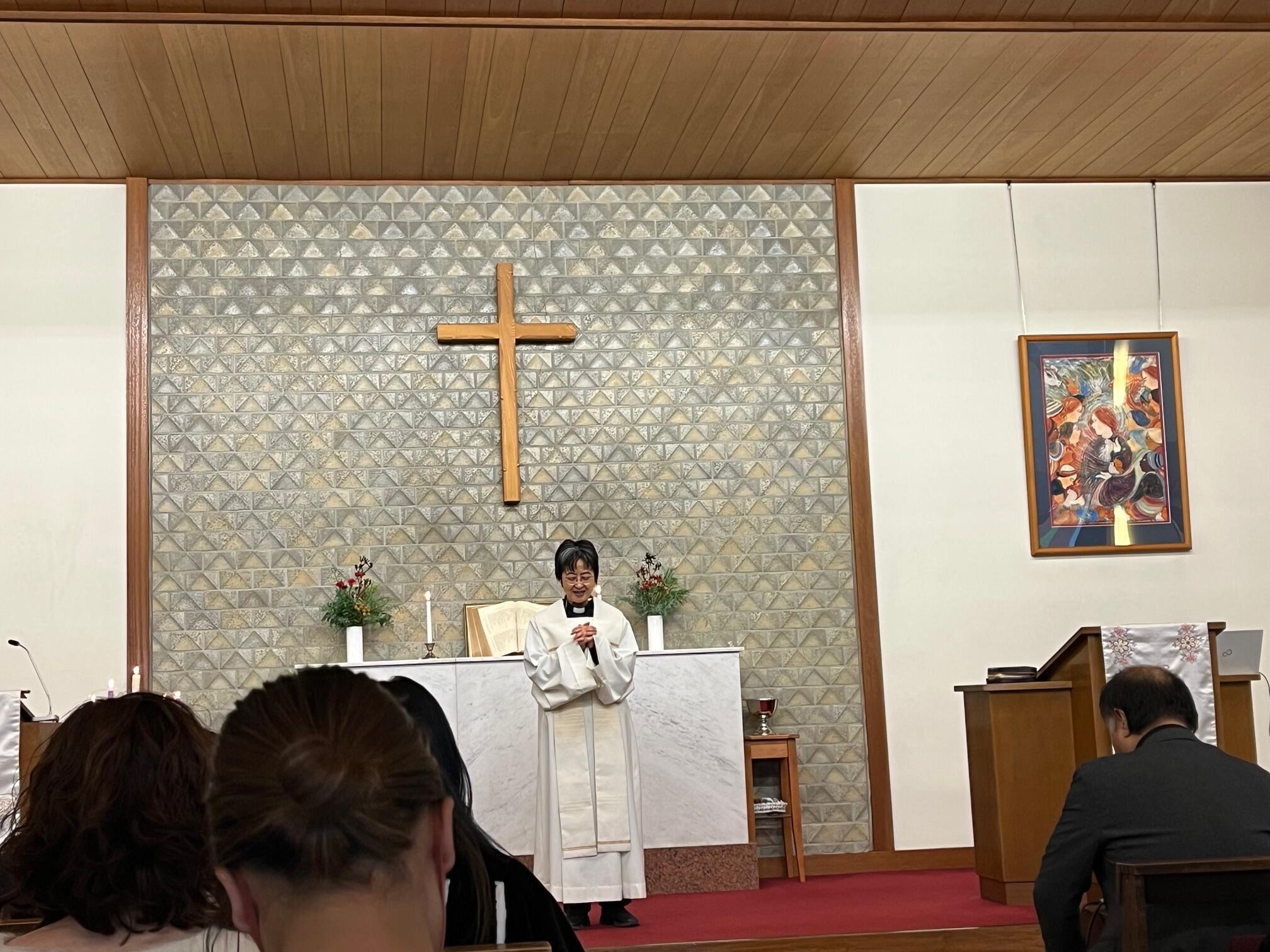 教会での礼拝では、「世界の人たちが豊かに幸せに暮らせるように」との小勝奈保子牧師による祈りと説教、祝福を受け、施設で暮らす子供たちが弾くピアノ伴奏に合わせて、全員で賛美歌を歌ったあと、伊丹桂施設長から「クリスマスはイエスキリストの誕生日。皆で仲良く一緒に"おめでとう"とお祝いをしましょう。」と、ベタニヤホームの職員の皆さんが登壇し、「もろびとこぞりて」を手話付きで披露しました。