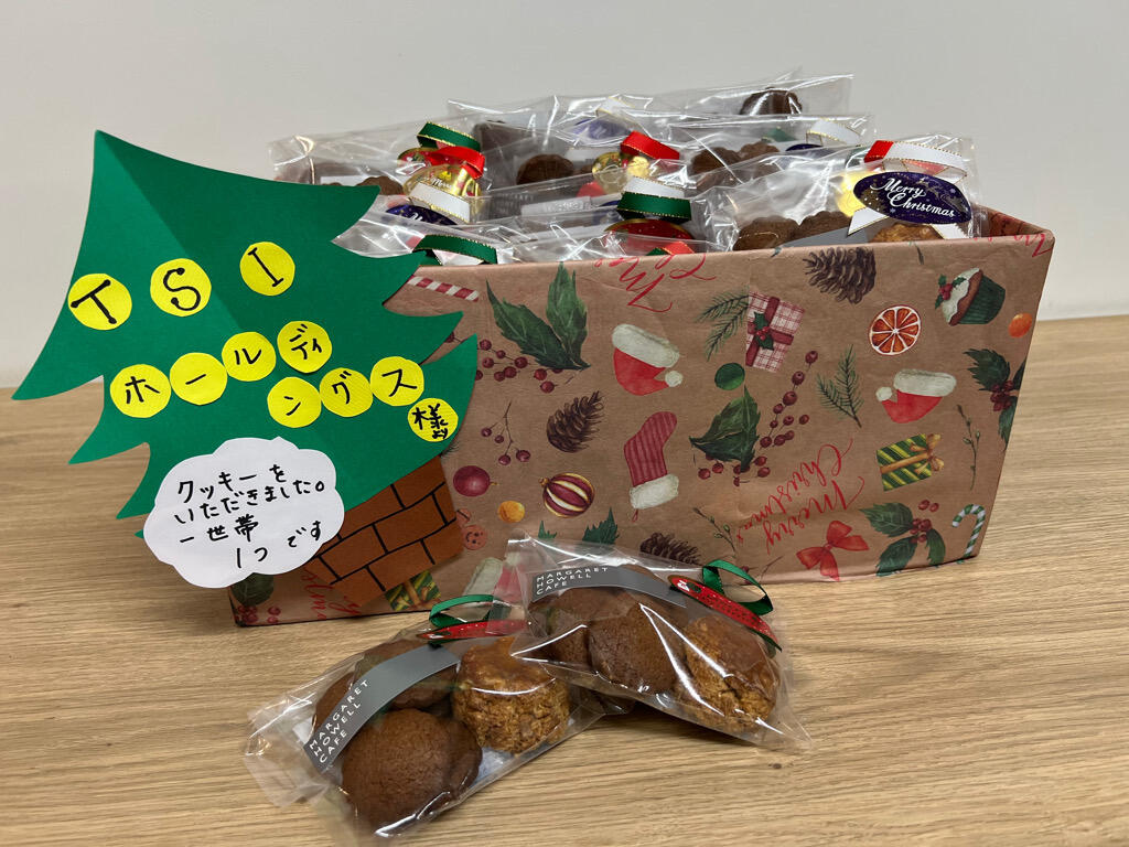 株式会社TSIホールディングス(本社:東京都港区赤坂、代表取締役社長CEO 下地 毅)は都内にある社会的養護を必要とする母子のための支援施設「ベタニヤホーム」でクリスマスを迎えた母子たち、一人ひとりに当社グループ会社運営の「MARGARET HOWELL CAFE」のパティシェスタッフがこの日のためだけに特別に製作した特製クッキー(非売品)をプレゼントし、一緒にクリスマスを祝いました。